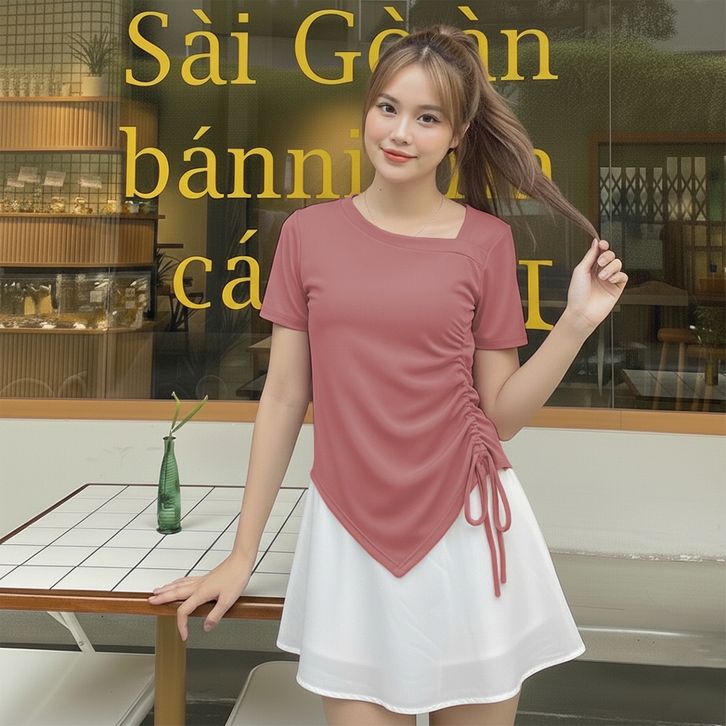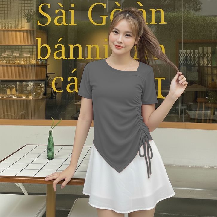 Crop Top Square Neck Tali Serut Samping Lengan Pendek 6058/917