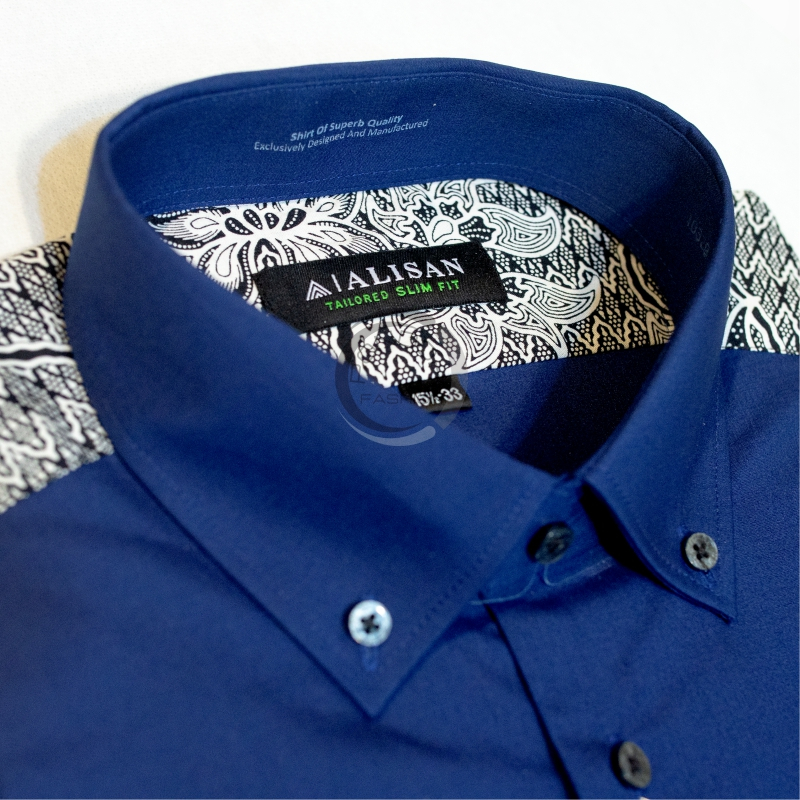 KEMEJA ALISAN PRIA POLOS KOMBINASI PUNDAK BATIK LENGAN PANJANG ORI 100 PERSEN