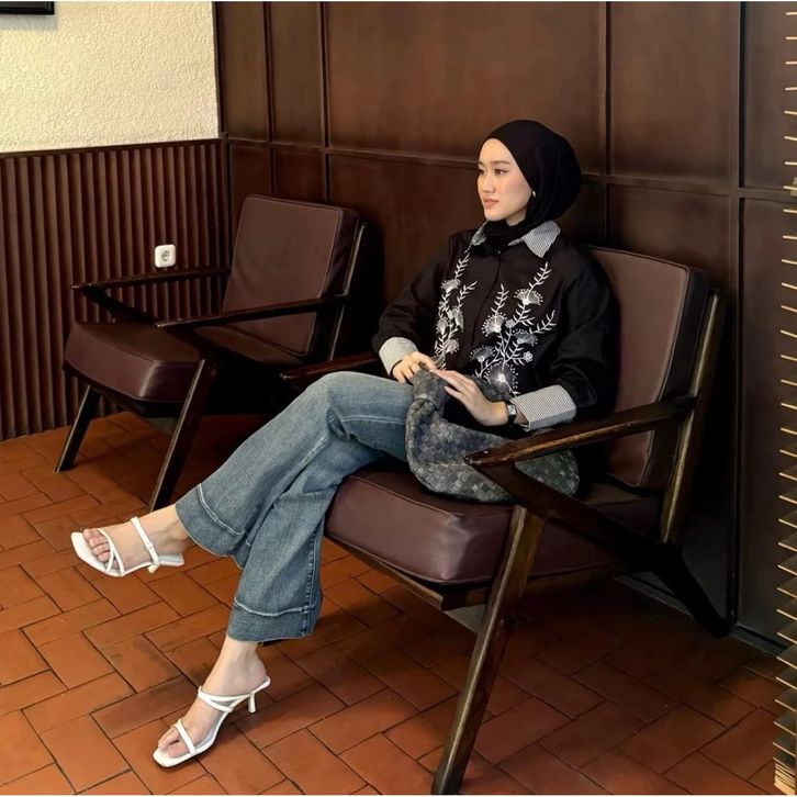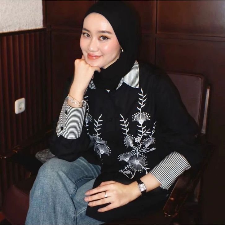 ATASAN WANITA BORDIR ELEGAN BLOUSE WANITA KEKINIAN AZKIA TOP KEMEJA OVERSIZE CEWEK RAYON BASIC PREMIUM