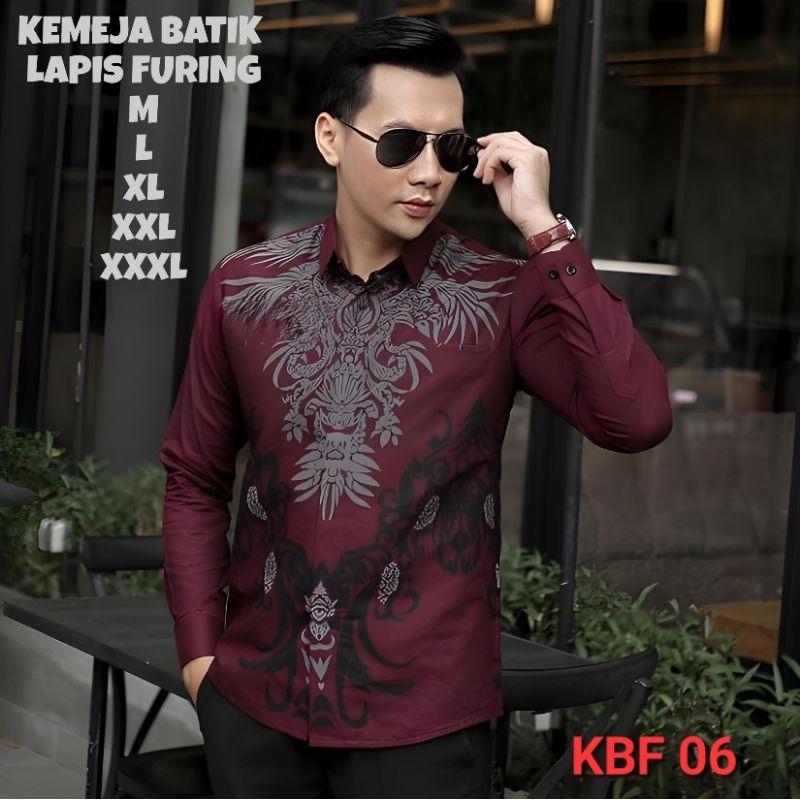 Kemeja BATIK Pria Lapis FURING Motif PUSOKO Lengan Panjang Standar Jumbo Bahan QUALITY PREMIUM