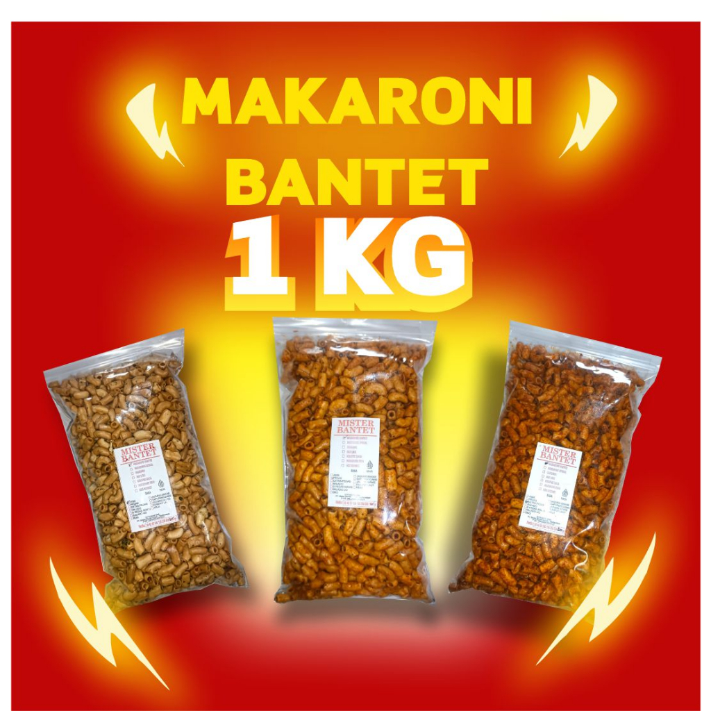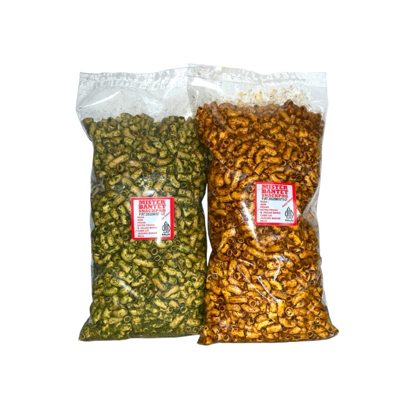 Makaroni Bantet 1kg Pedas Gurih Daun Jeruk 5 Varian Rasa - Misterbantet Snackpro