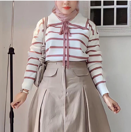 BLOUSE KNIT ATASAN RAJUT WANITA MOTIF SETRIP GARIS KERAH LUCU