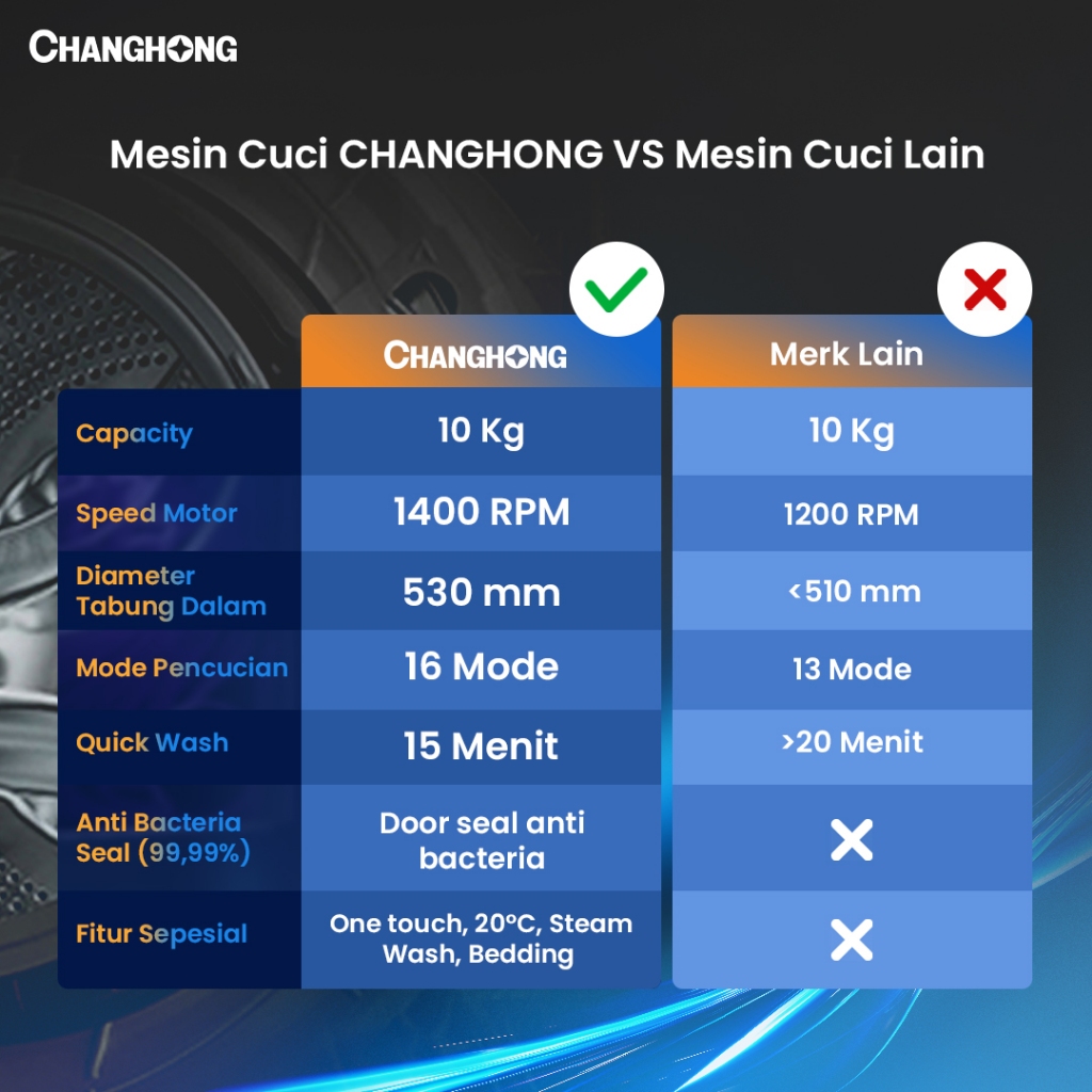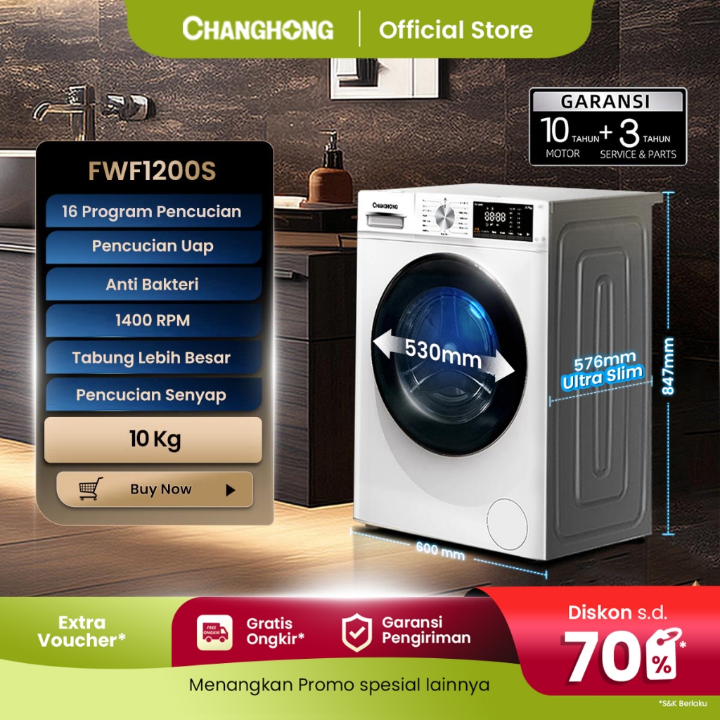 Changhong Mesin Cuci Smart Front Loading Kapasitas 10 kg Model FWF1200S - Bukaan Depan Rasakan Tabung Ekstra Besar