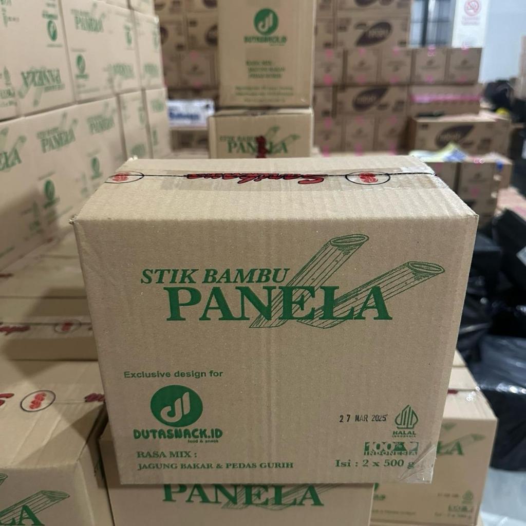 1 KARTON snack PANELA STIK BENTUK BAMBU isi 2 kantong total 1kg - pedas gurih - 2 rasa mix