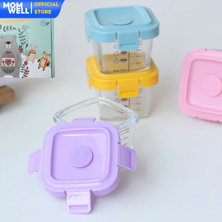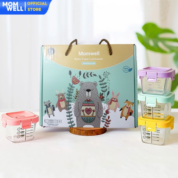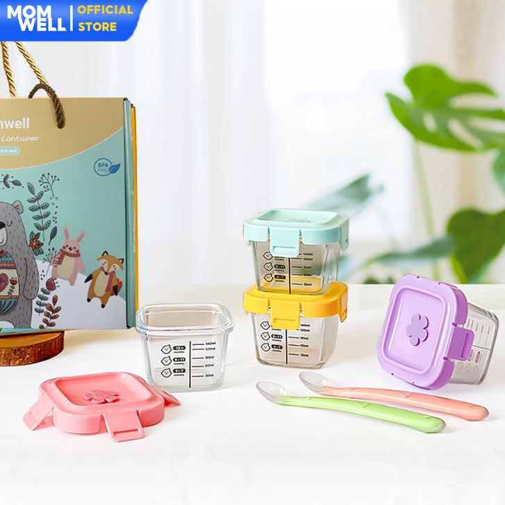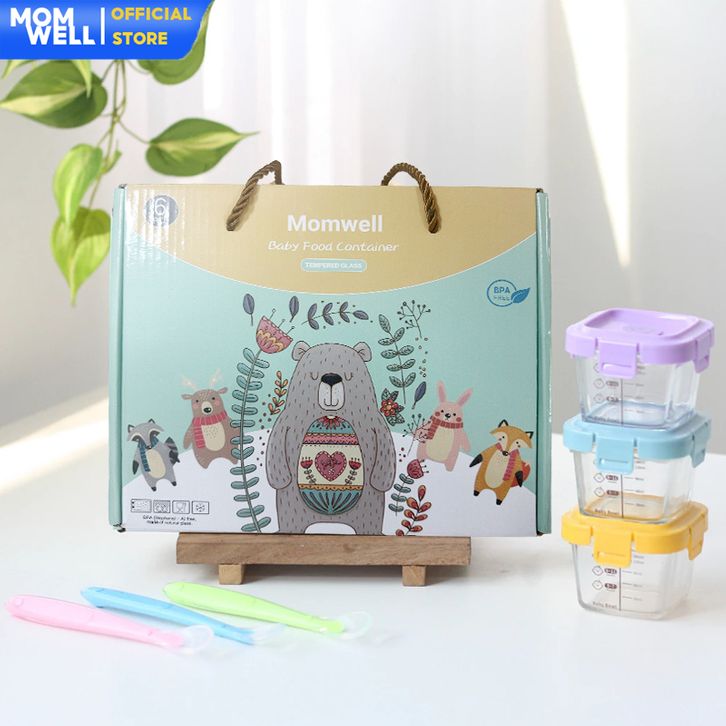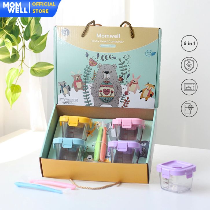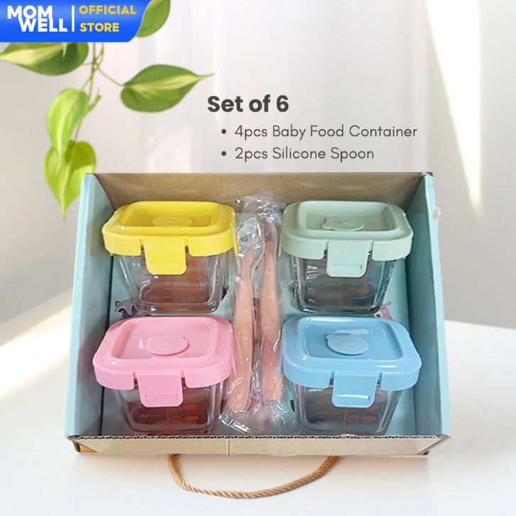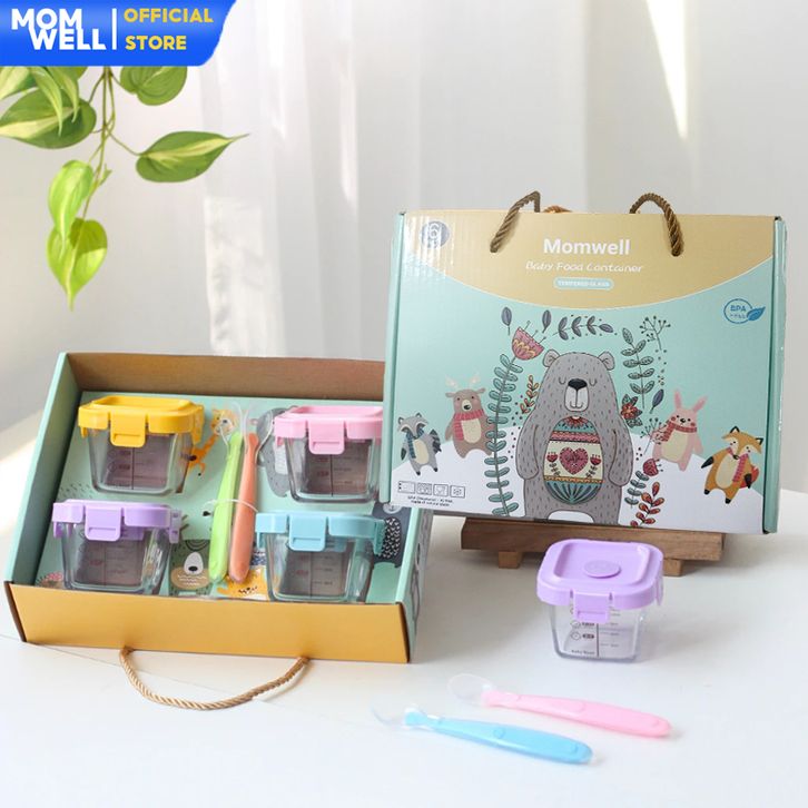 Hampers Baby Gift Set Wadah MPASI Kaca Borosilicate+Sendok Silicone Kado Kelahiran Newborn