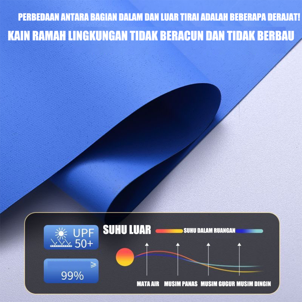 Roller Blind Jendela Blackout Indoor/Outdoor Fabric Roller Blinds Indoor Tahan Air Hujan Tirai Gulung Kerai Solar Screen