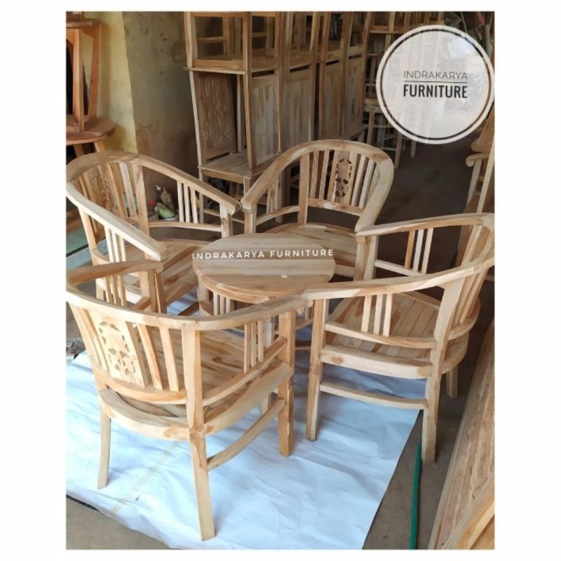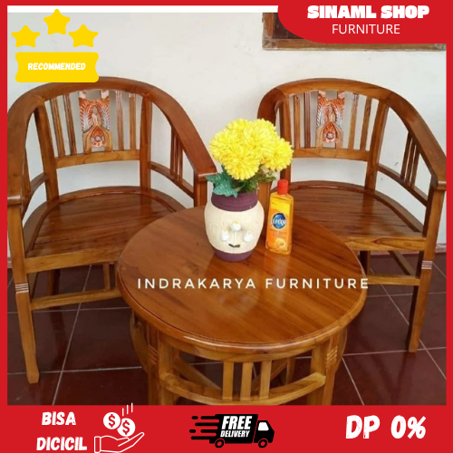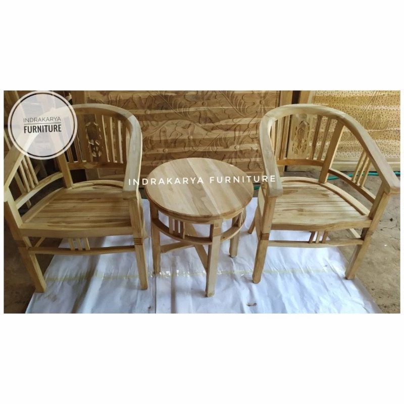 kursi teras depan rumah Kursi Teras Jati Solid Kursi Teras Minimalis Betawi Amerika Jati Set. 2+1