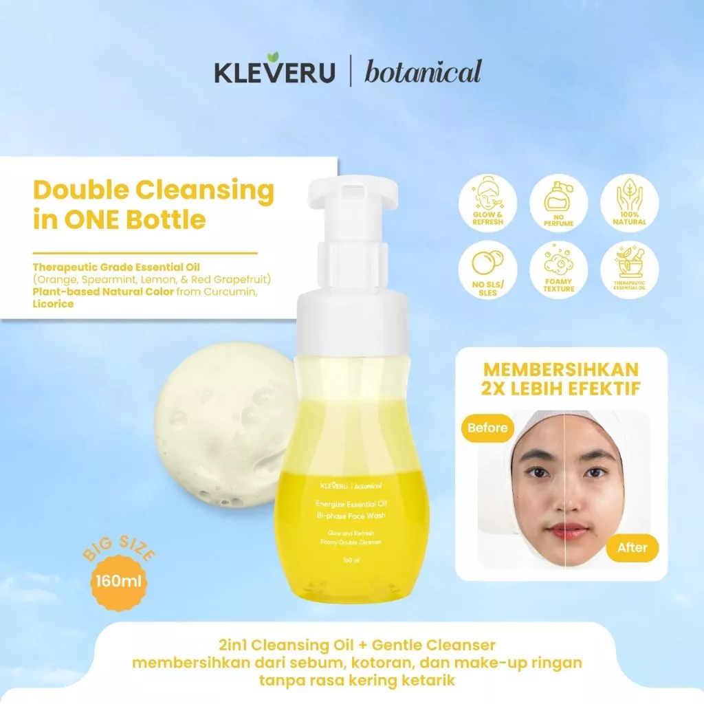 KLEVERU Botanical Energize Essential Oil Bi-phase Face Wash ( 2in1 Cleansing Oil + Gentle Cleanser Natural )