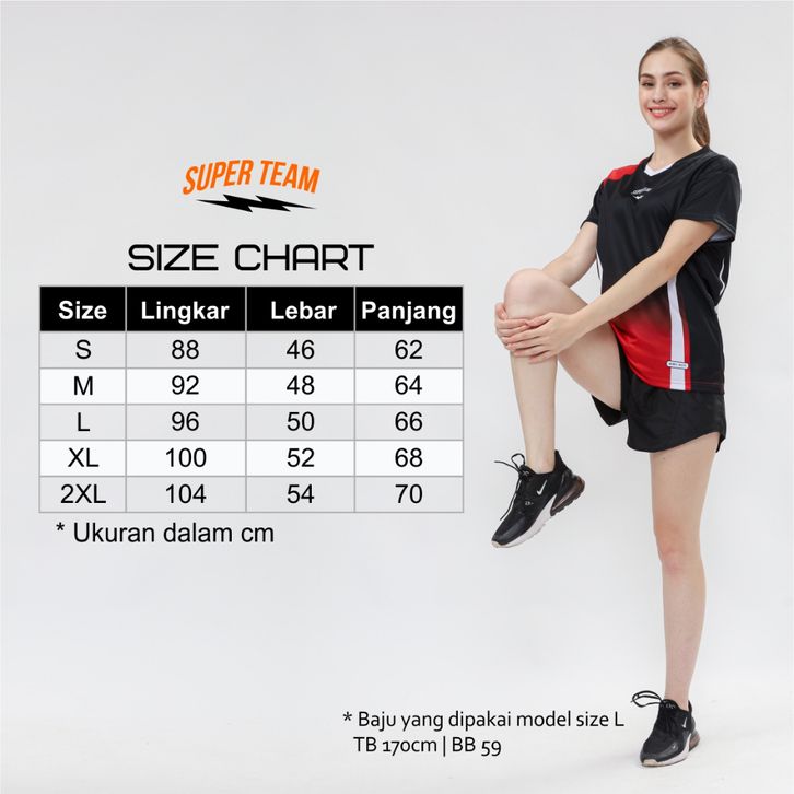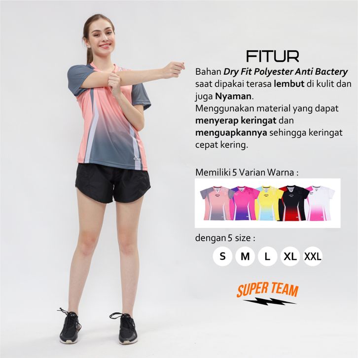 SUPER TEAM BAJU OLAHRAGA WANITA MOTIF VB11 BAHAN POLYESTER JERSEY LARI SENAM VOLI BULUTANGKIS SEPEDA