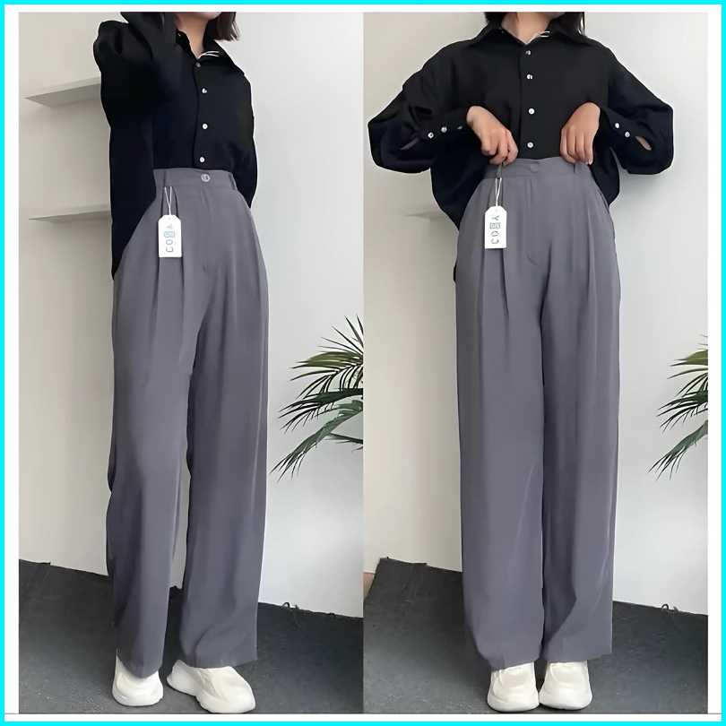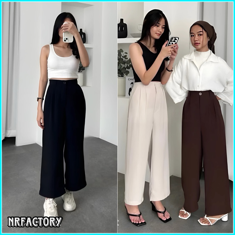 Loose Pants Trousers - Celana Kulot Anti Kusut Premium - Celana Kulot Wanita - Celana Wanita Highwaist - Celana Panjang