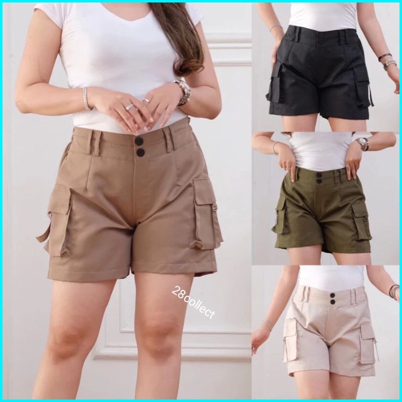 Hotpants Cargo Celana Pendek Wanita Highwaist Variasi Kancing Dua