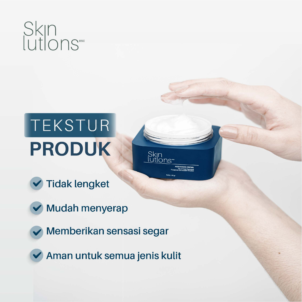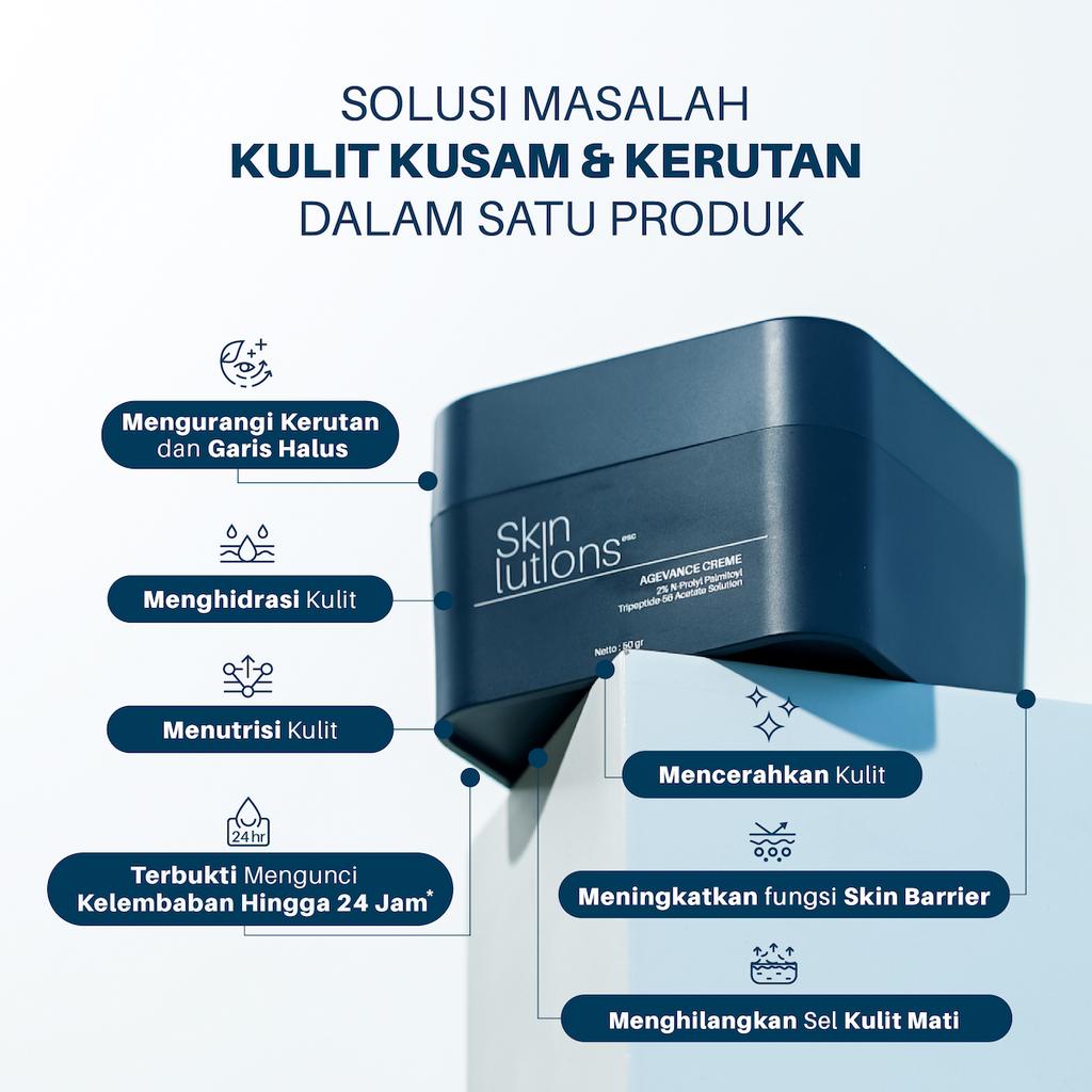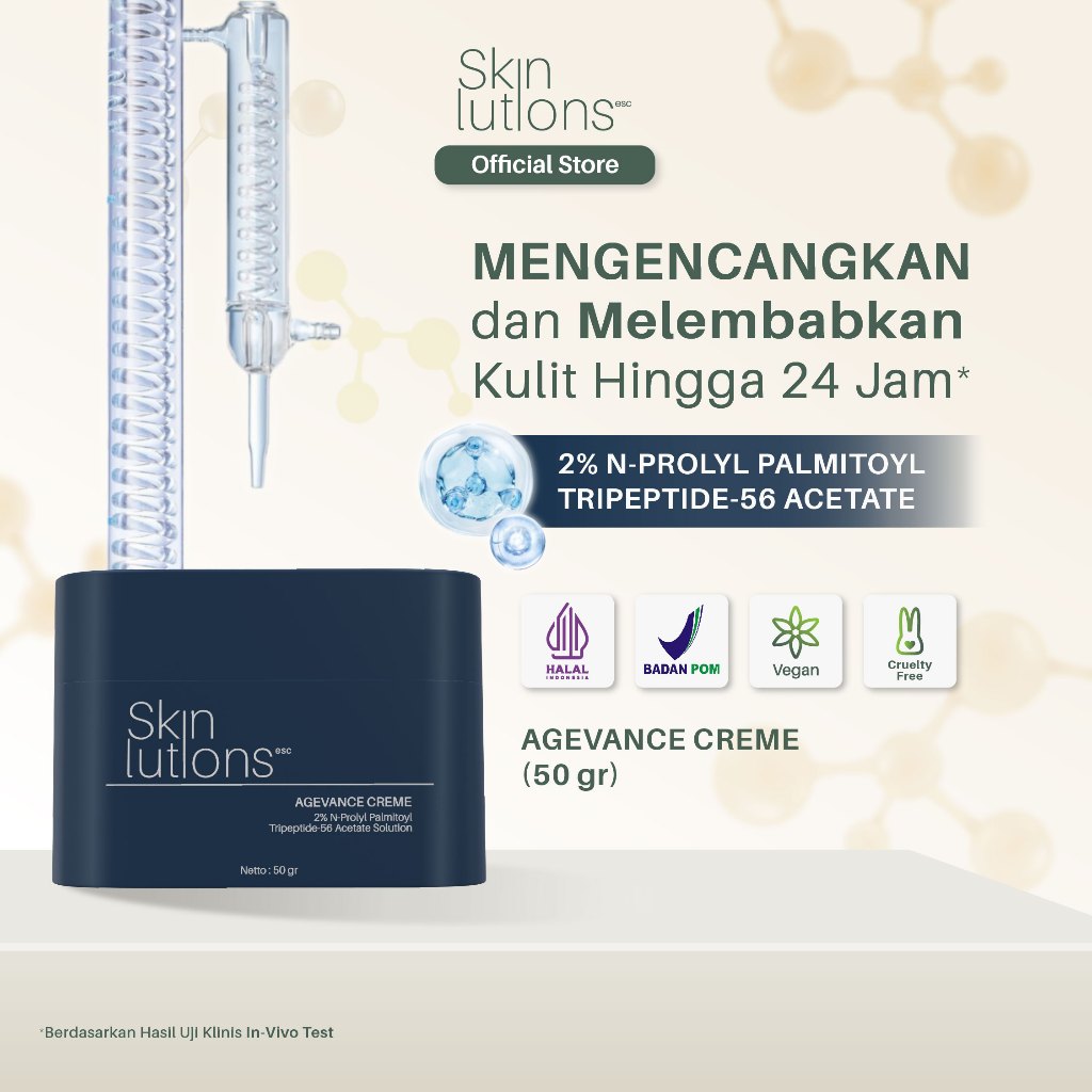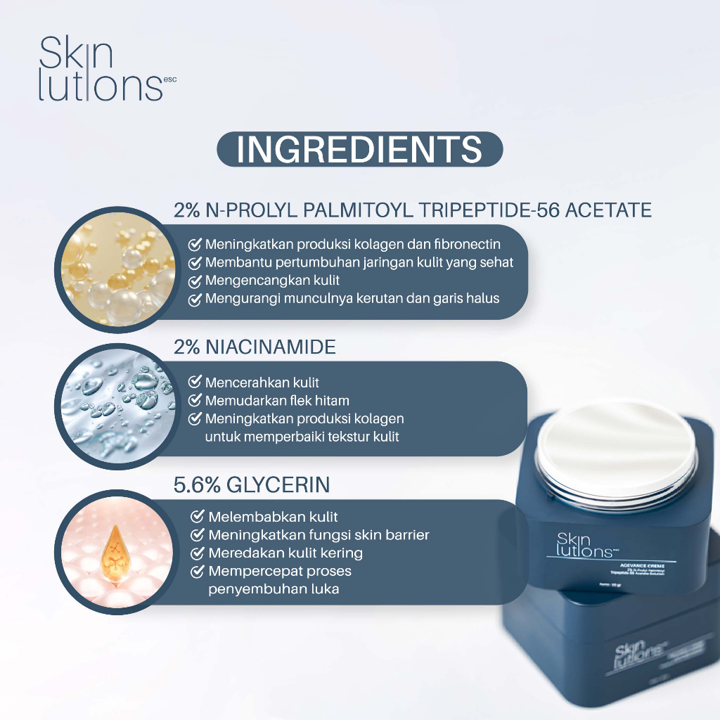 PELEMBAB WAJAH SKINLUTIONS ESC AGEVANCE CREME N-PROLYL PALMITOYL TRIPEPTIDE-56 ACETATE SOLUTION NIACINAMIDE GLYCERIN / M
