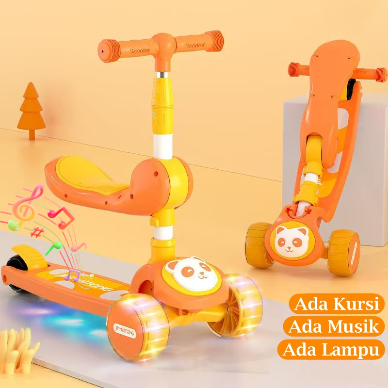 Skuter Anak Roda 3 Mainan Scooter Otoped Bisa Lipat Dengan Lampu Musik