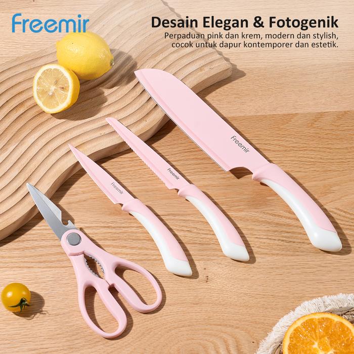[MEGA SALE] NEW freemir Pisau Set 4 pcs Stainless Steel Anti Karat Tajam Pisau Sayur Pisau Daging Gunting Berkualitas