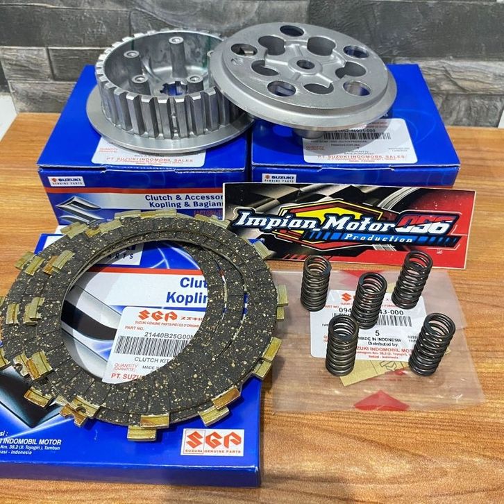 PAKET KOPLING SGP PER KOPLING + RUMAH KOPLING KAKI 5 + LAWAN KAKI 5 + KAMPAS KOPLING SATRIA FU 150 OLD NEW