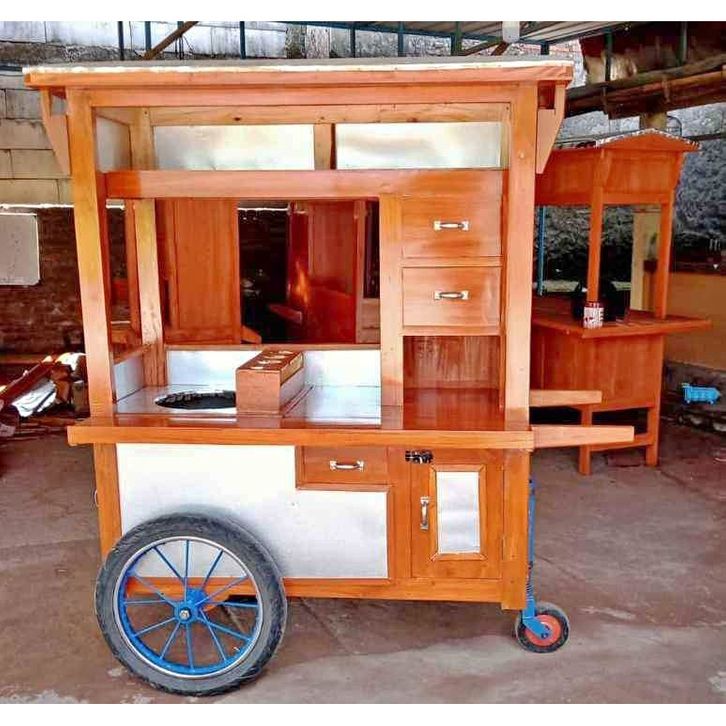 Gerobak Mie Ayam Dorong Bahan Kayu mahoni dan Galvalume