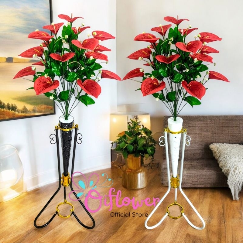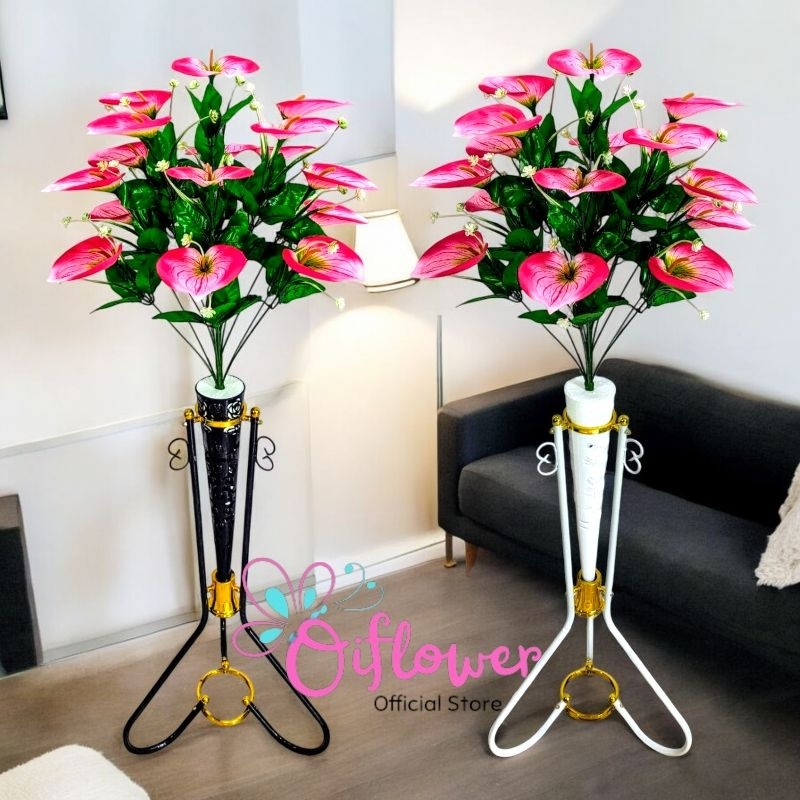 Bunga Hias Sudut Ruangan Bunga hiasan Anthurium Lily 18.Kuntum Pot Standing Besi Corong Plastik Hiasan Sudut Ruangan