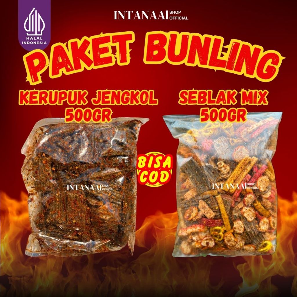 PAKET BUNDLING KERUPUK JENGKOL PEDAS SEBLAK MIX KEMASAN 500 AN