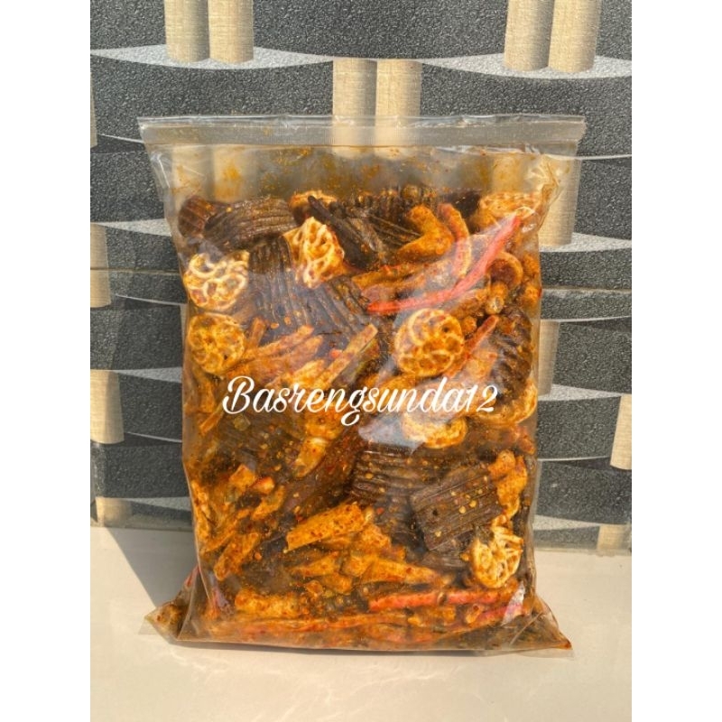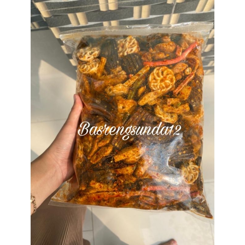 SEBLAK KERUPUK CAMPUR 1KG /SEBLAK MIX Basreng/kerupuk beton/kerupuk jengkol/kerupuk pedo/siomay/cimol pedas Daun jeruk