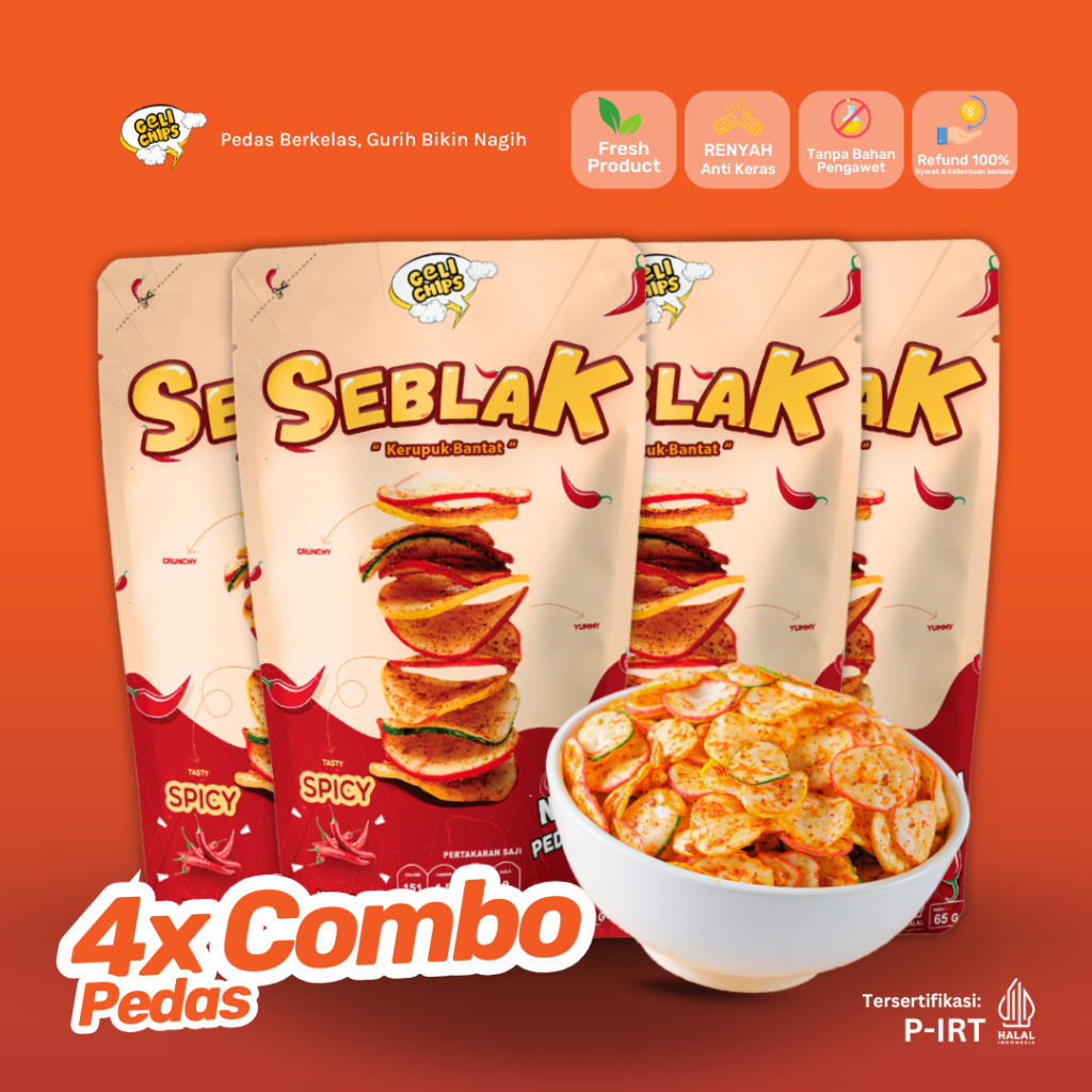 GELICHIPS - Paket Combo 4pcs Seblak Kering Pedas Daun Jeruk Gurih Renyah 65gr