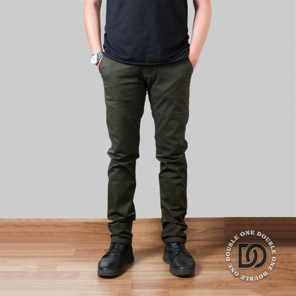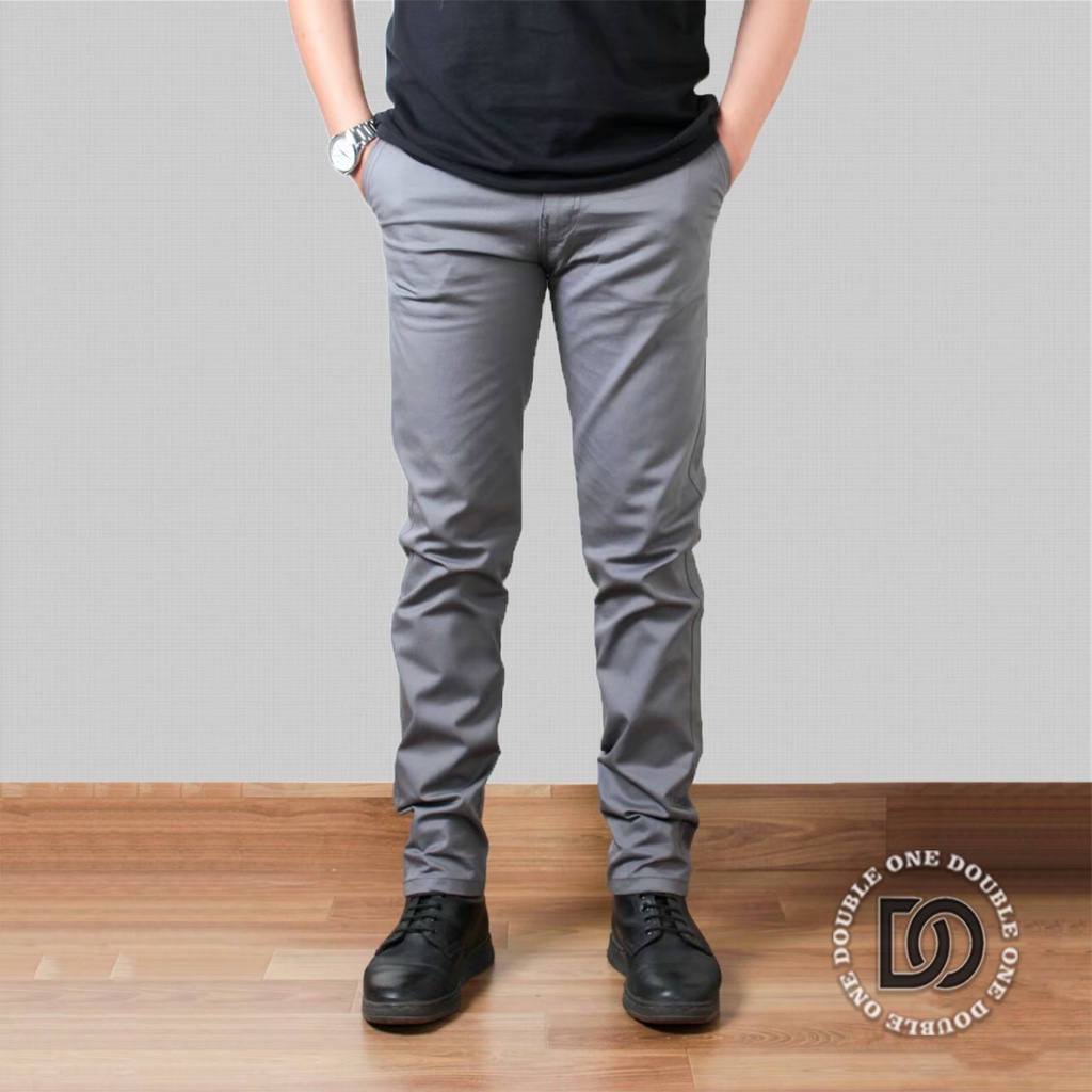 DOUBLE ONE - CELANA CHINO PANJANG SLIMFIT ABU TUA / CELANA CHINO STRETCH / CELANA PANJANG PRIA / CELANA CHINO PREMIUM