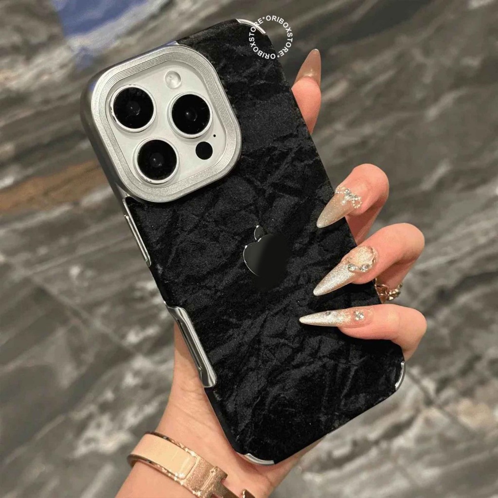 Snow Mountain Case Electroplated Flannel With Sticker Logo - Softcase/Casing Hp Compatible For Iphone X Xs Xr 11 12 13 1