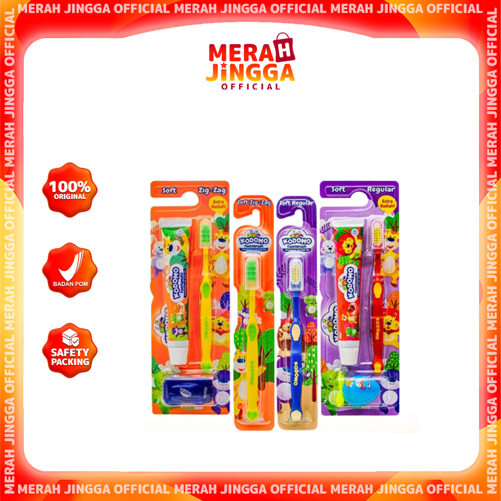 Kodomo Kids Sikat Gigi- Sikat Gigi Anak 2in1 - Toothbrush | Merah Jingga Official