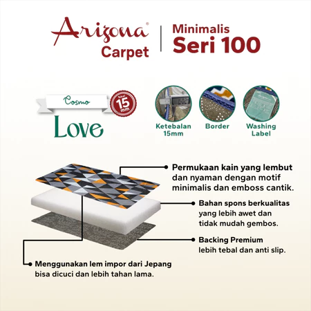 Karpet Lantai Quality Premium Malaysia Cosmo Love Ukuran 140x190cm Free Sajadah - Karpet Busa Permadani Arimza Motif