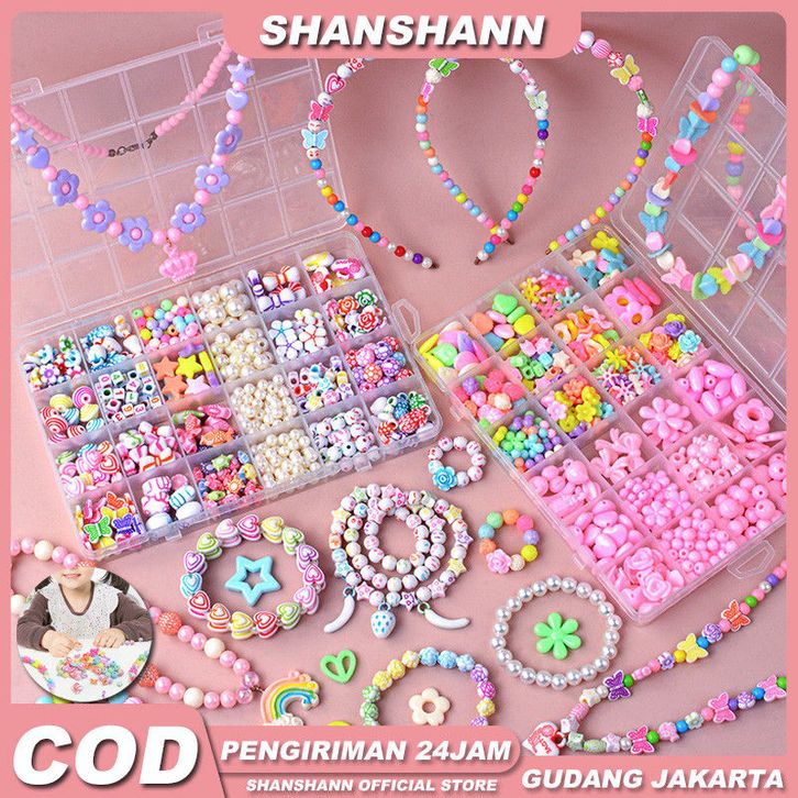 Beaded Diy / Mainan Edukasi Kreatifitas Anak Meronce Gelang Kalung Gantungan / Aksesoris Diy Gelang Manik-manik Set