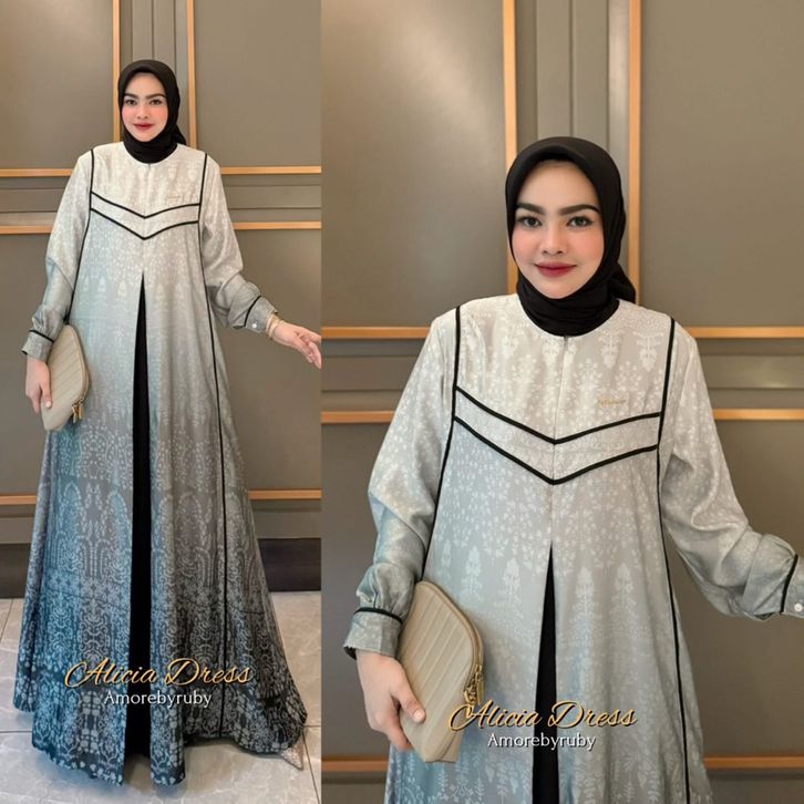 ALICIA DRESS AMORE BY RUBY GAMIS SILK MOTIF BATIK MEWAH BUSUI FRIENDLY WUDHUAE TALI GGANG MURAH