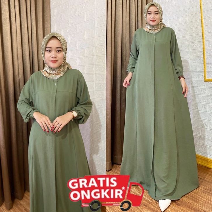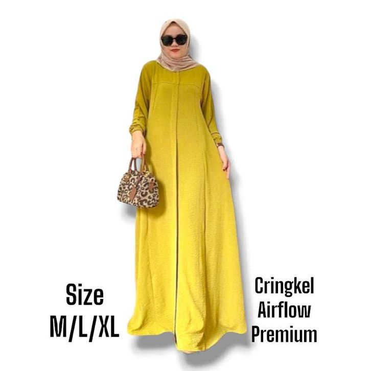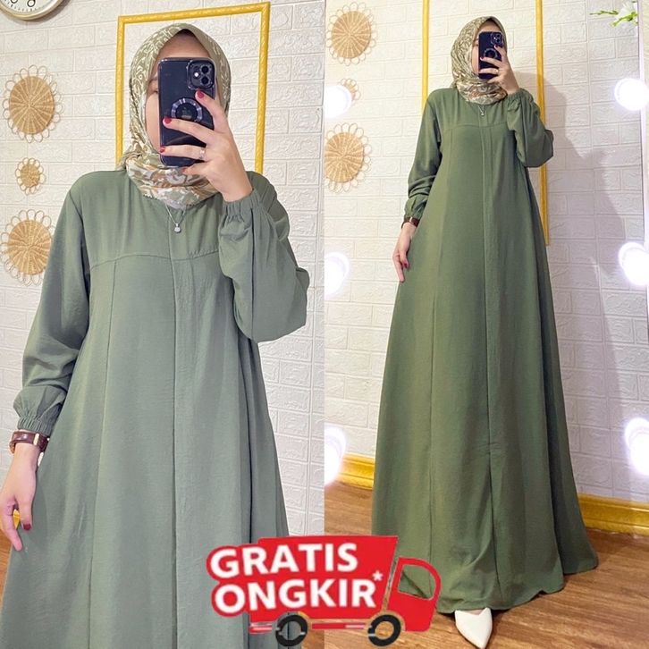 Gamis Crinkel 224 Dress Elegan Simpel Mewah Maryam Airflow Premium Busui Saku Tali Samg