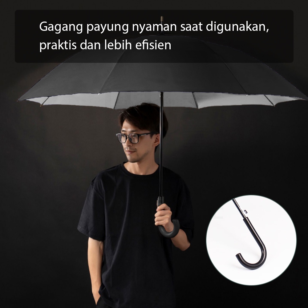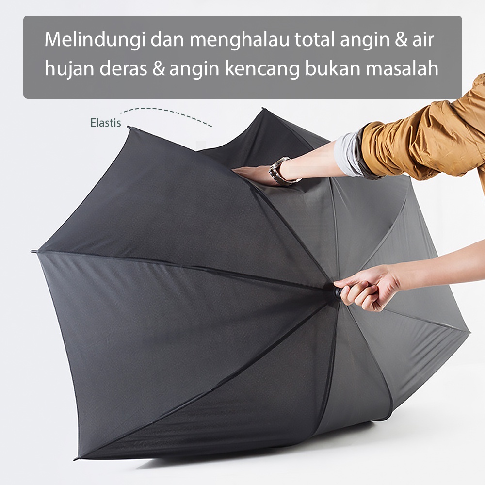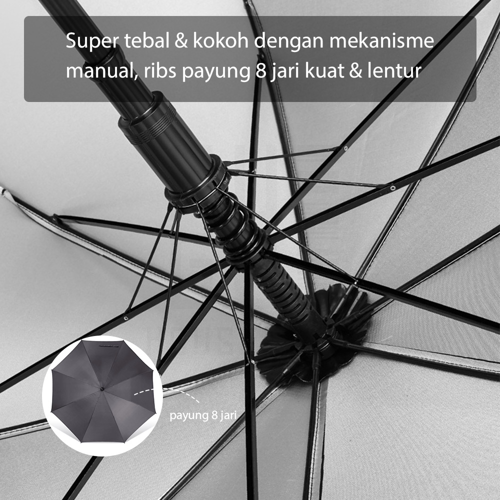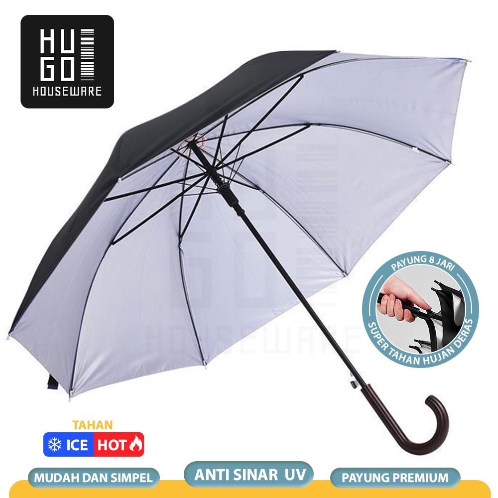 PROMO HUGO Payung Polos Warna Standar Otomatis Anti UV Payung Promosi Besar Gagang Tongkat Rangka Kuat Kokoh