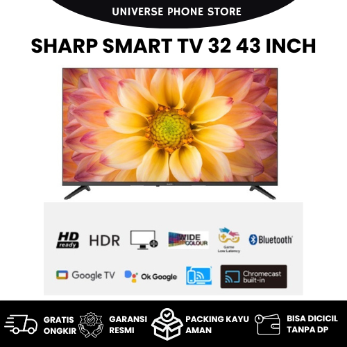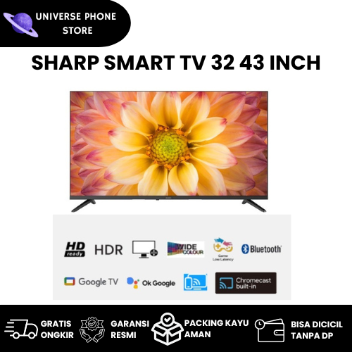 SHARP SMART TV 32 INCH GOOGLE LED ANDROID TV 43 55 INCH DIGITAL DVB-T2 NETFLIX YOUTUBE GARANSI 5 TAHUN CICILAN TANPA DP