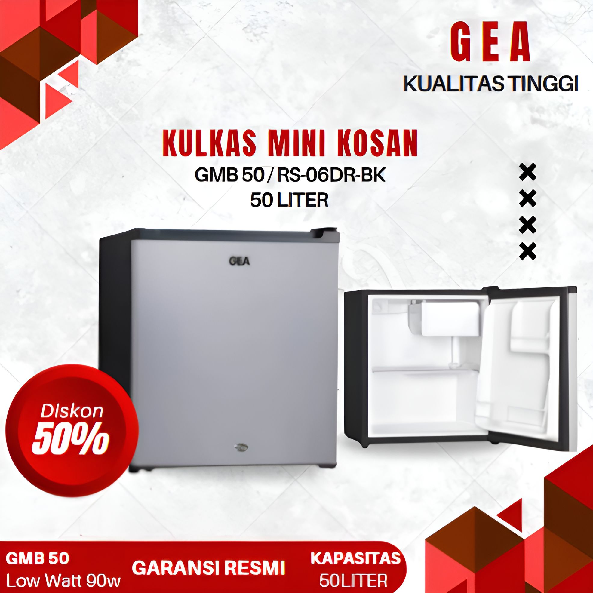 [Star] GEA Kulkas Mini Kosan GMB-50 Inox 48L Kulkas Mini Bar Portable Rak Pendingin Besi Lemari Es Mini Bar kulkas keci