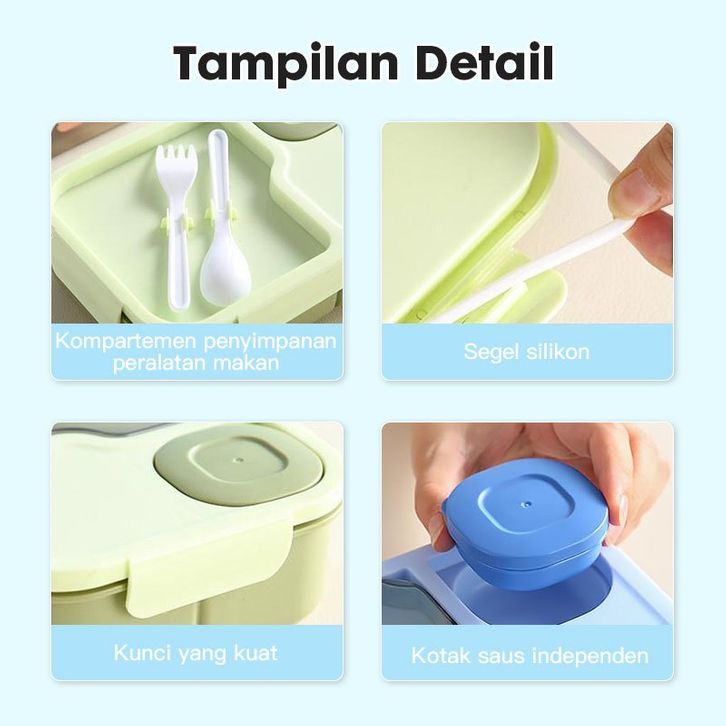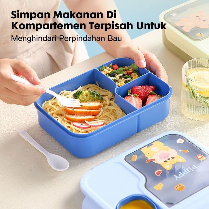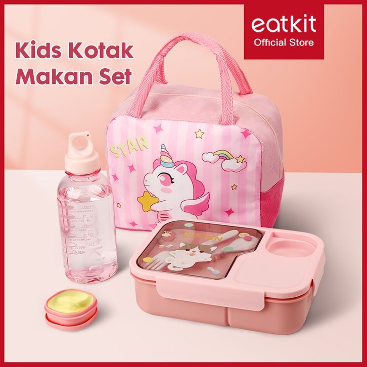 Tempat Makan Anak 1450ml Lunch Box Set 3 Sekat BPA Free Kotak Bekal Karakter Tas Bekal Anak Sekolah PAUD TK SD