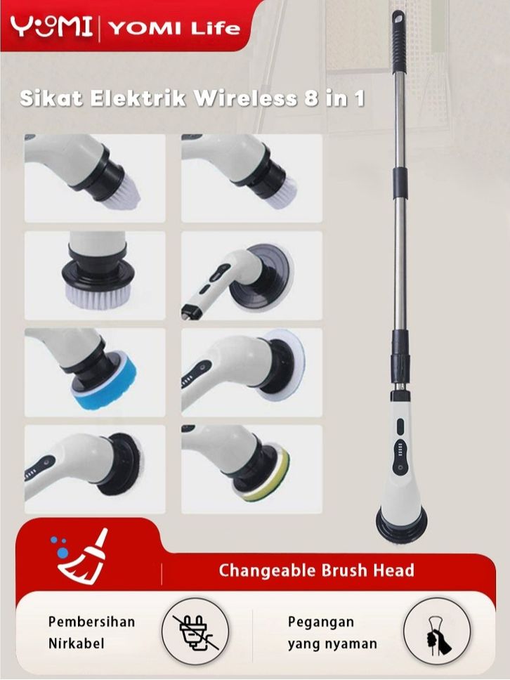 Sikat Elektrik Wireless 8 in 1 multifungsi Handheld Sikat multifungsi Kamar Mandi Rotasi Cerdas 360° Brush Pembersih La