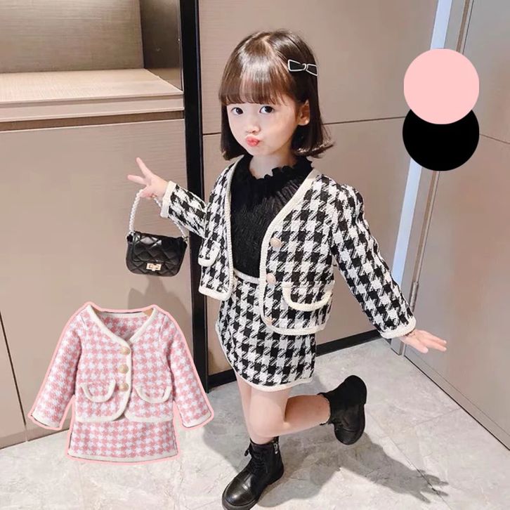 1-8tahun Setelan Blazer Rok Elegant Anak Perempuan Ootd Pesta Baju Kondangan Anak Cewek Hitam Pink