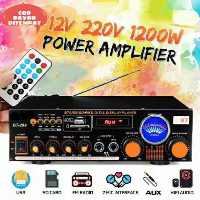 POWER AMPLIFIER SOUND SYSTEM / POWER AMPLIFIER BLUETOOTH FLECO BT-299 AMPLI BT 299 KARAOKE SALON AKTIF
