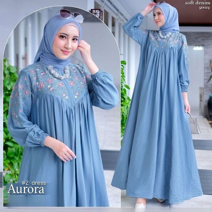 SPESIAL BORDIR AURORA DRESS GAMIS WANITA BAHAN CKEL AIRFLOW HQ ZIPPER DEPAN BUSUI GAMIS SERAGAMAN