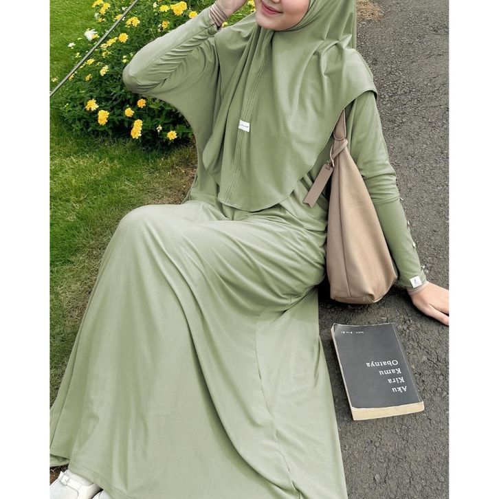 Gamis Mecca Abaya Set Kerudung Gamis Syar'i Bahan Jersey Premium Abaya Umroh Busui Friendly