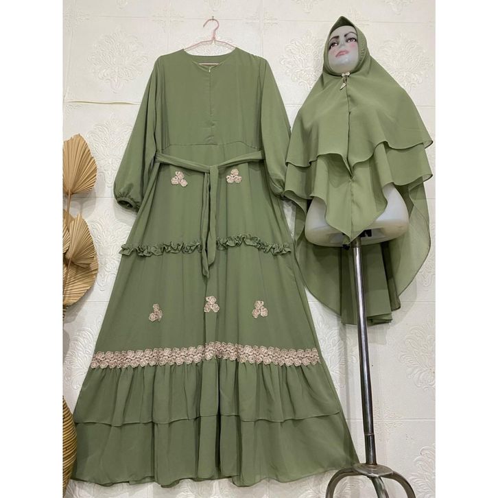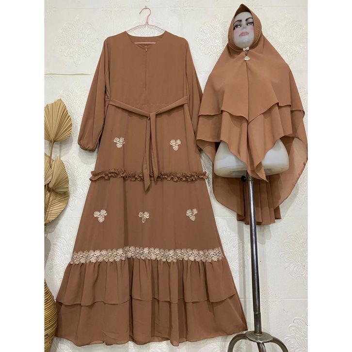 Gamis Syari Ceruty Renda / Gamis Mix Renda Bunga Cantik / Gamis Ceruty Babydoll