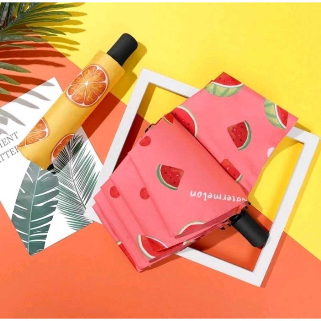 Payung Lipat Motif Buah Semangka Lemon Alpukat Jeruk Buah Peach Anti Sinar UV Protection