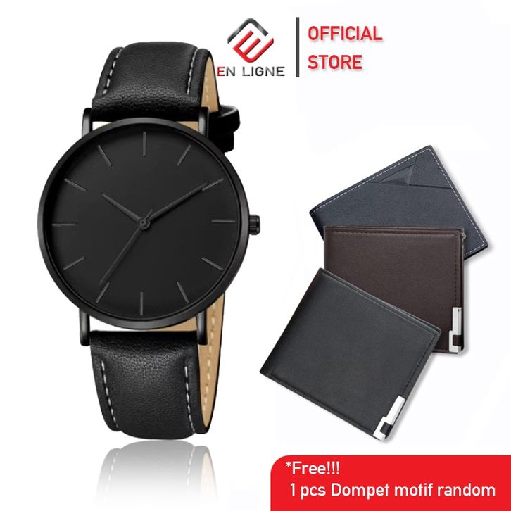 Set Jam Tangan Pria EN LIGNE Jam Tangan Gift - Jam Tangan Kado - Jam Tangan Dompet Set - Kado Ultah - Hampers