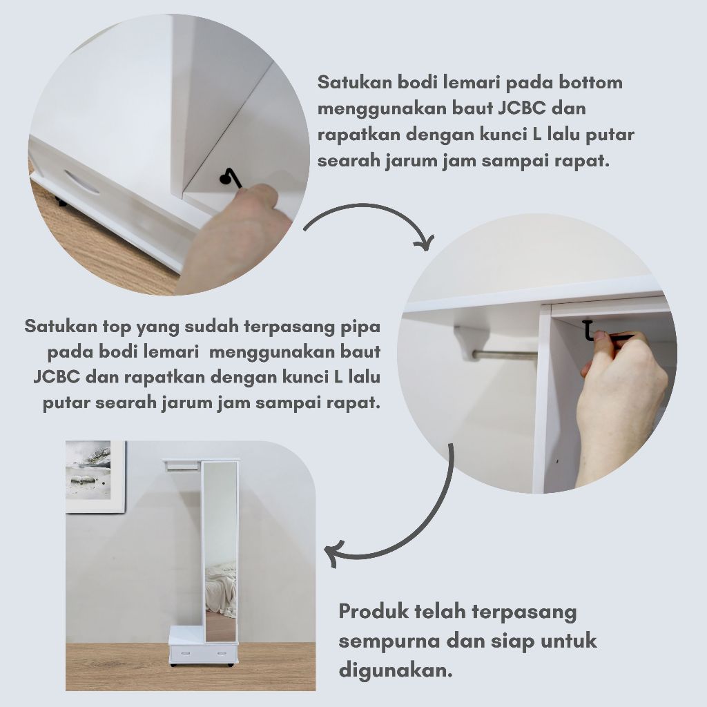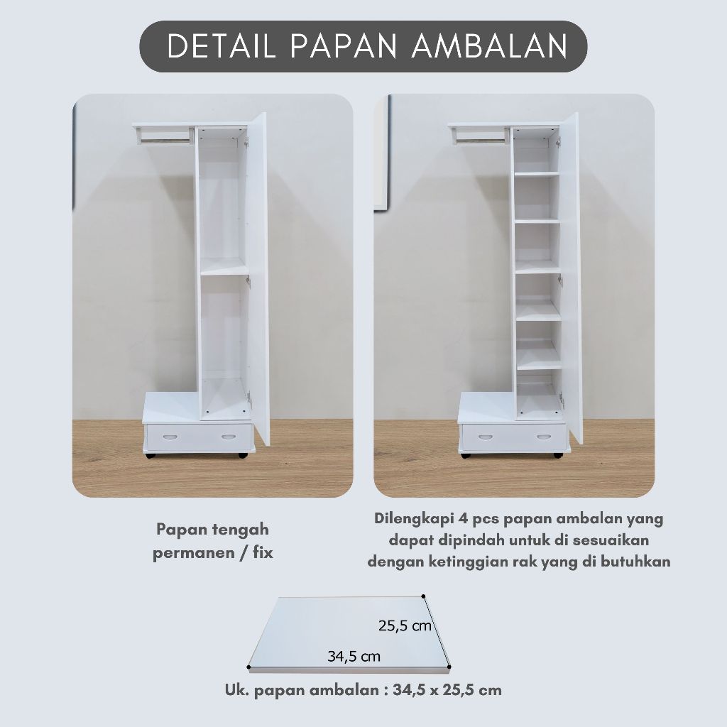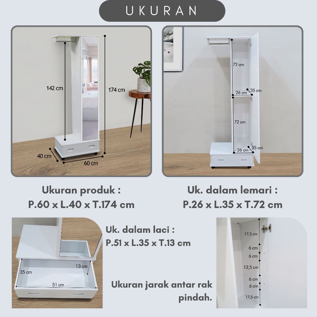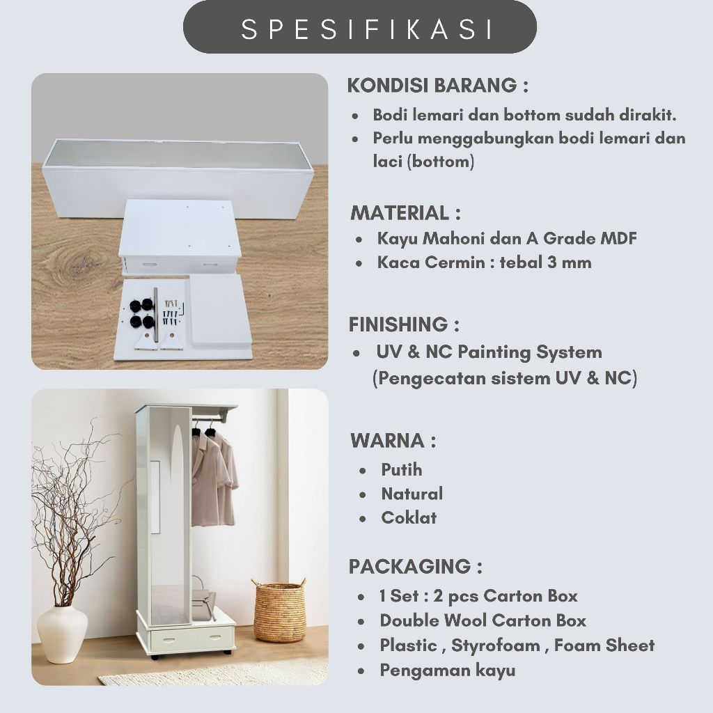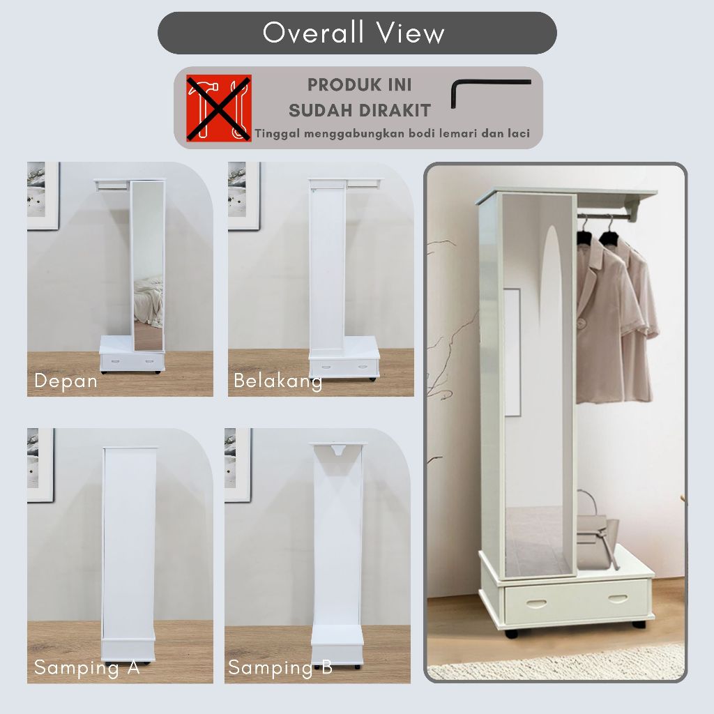Toraya Lemari Rias/ Meja Rias/ Lemari Pakaian Gantungan/ Cermin Full Body/ Standing Mirror/ MR-CA 60