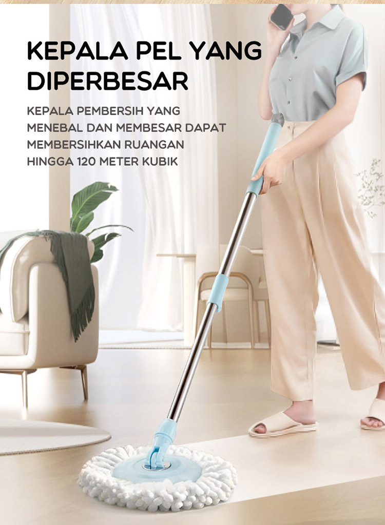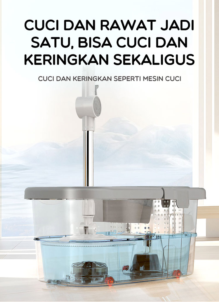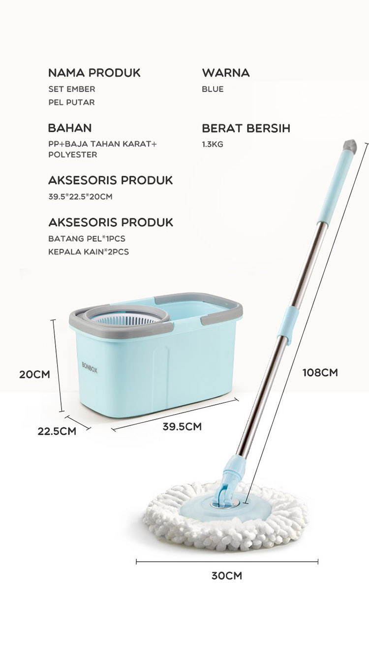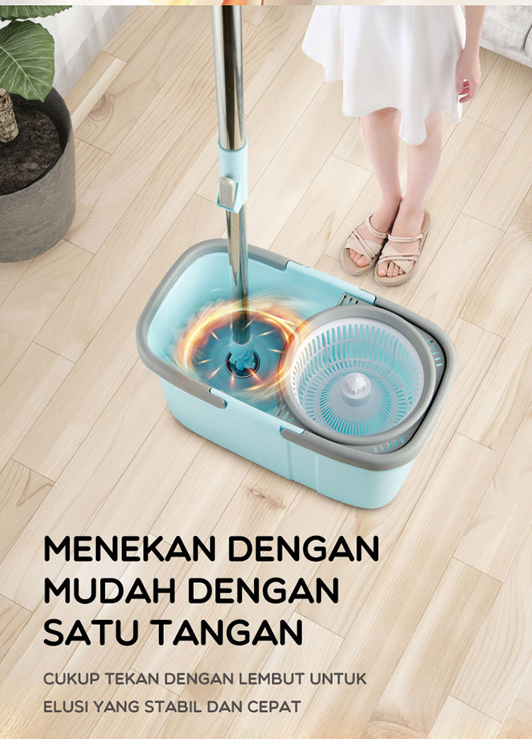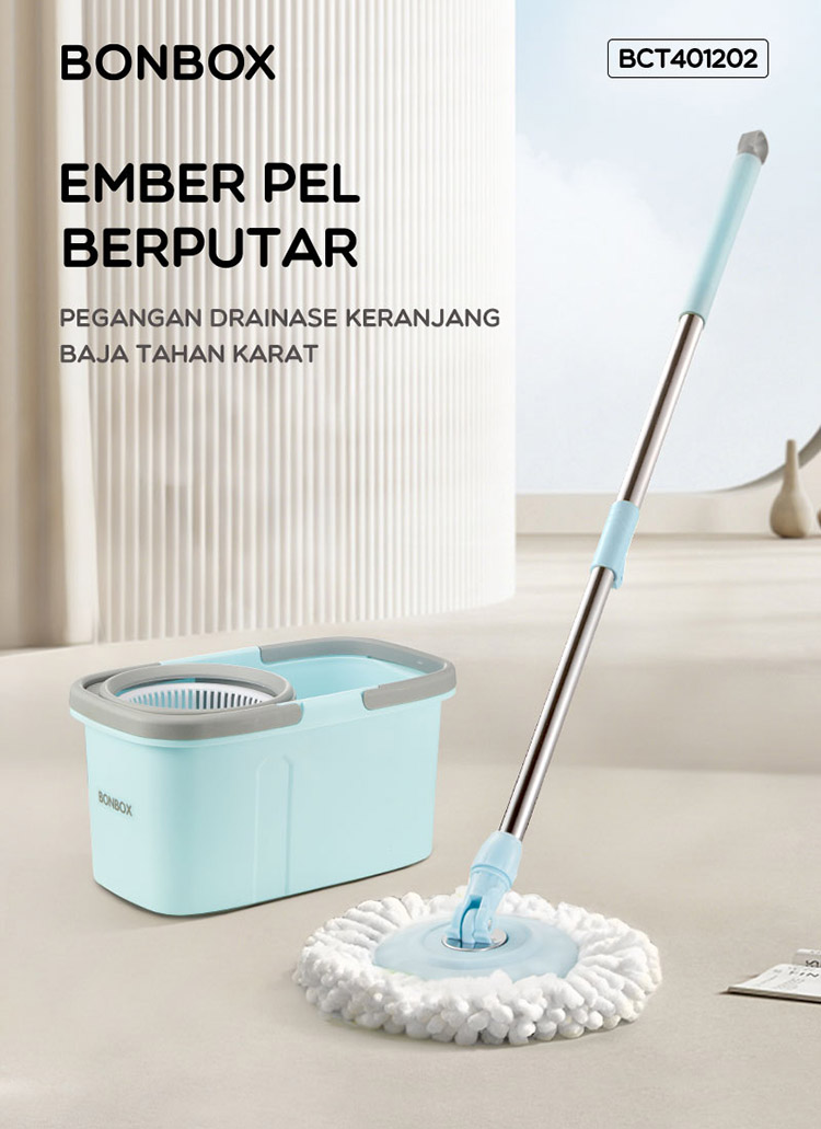 Bonbox Alat Pel Lantai Ember 2 in 1 Kain Fiber dengan Ember Spin Mop Mencuci dan Membilas Alat Pembersih Lantai