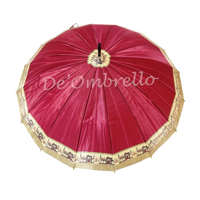 Promo (063)Payung 16 Jari Bahan Saten Motif Polos List Gedung Handle Emas