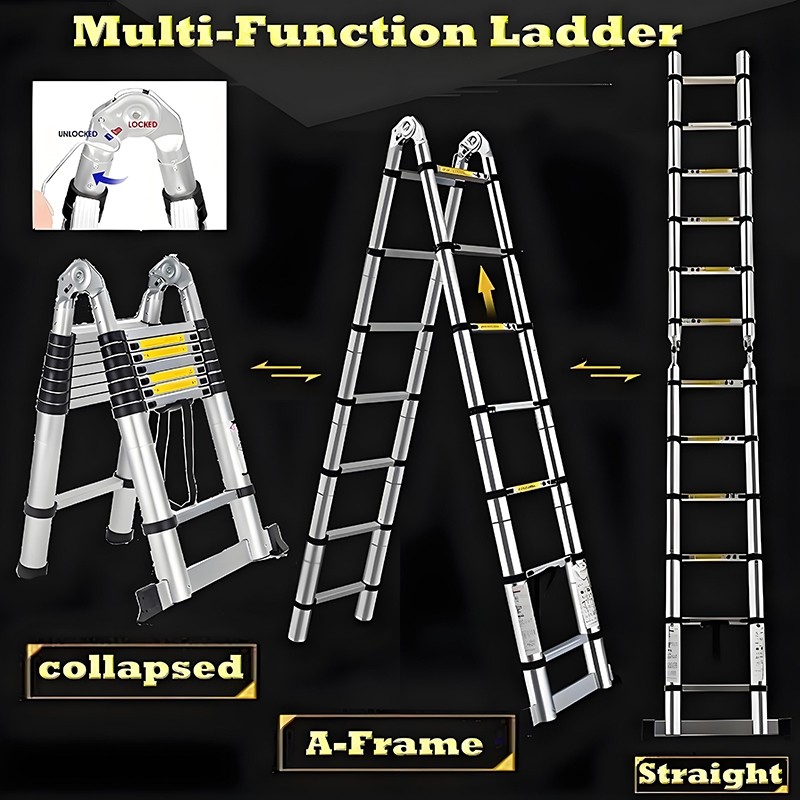 【】Tangga Tele Aluminium Portabel Tangga Lipat 5.8Meter Telescopic Ladder Tangga Lurus