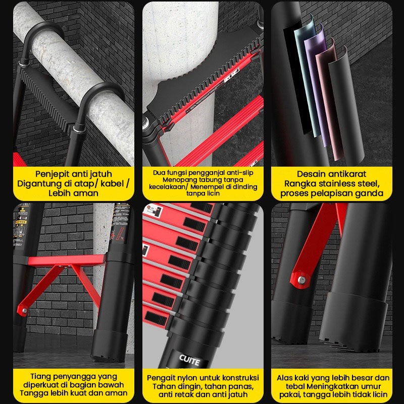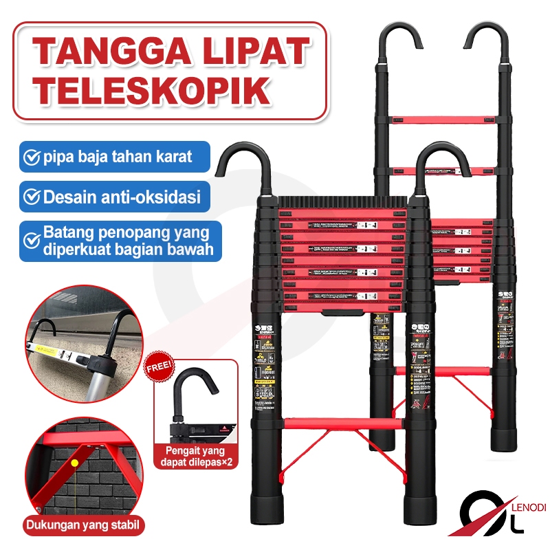 Tangga Tele Multifungsi 5.1M /2.7M/3.9M/Telescopic Ladder Tangga lipat stainless steel Portabel Tangga Lipat/Tangga Tele