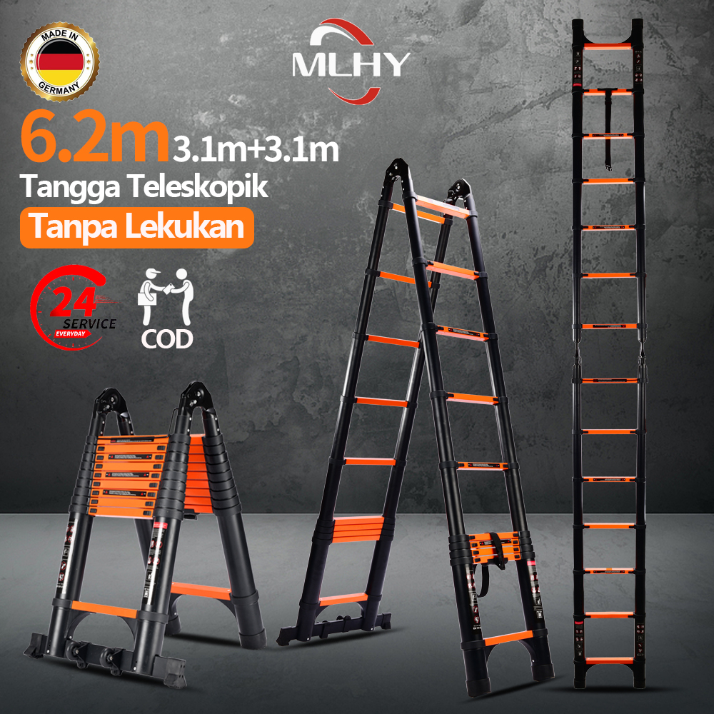 Ready!MLHY Tangga Tele tanpa lekukan(3.1+3.1)6.2M Aluminium Double Telescopic Ladder 6.2 Meter Tangga Tele Portabel Ruma
