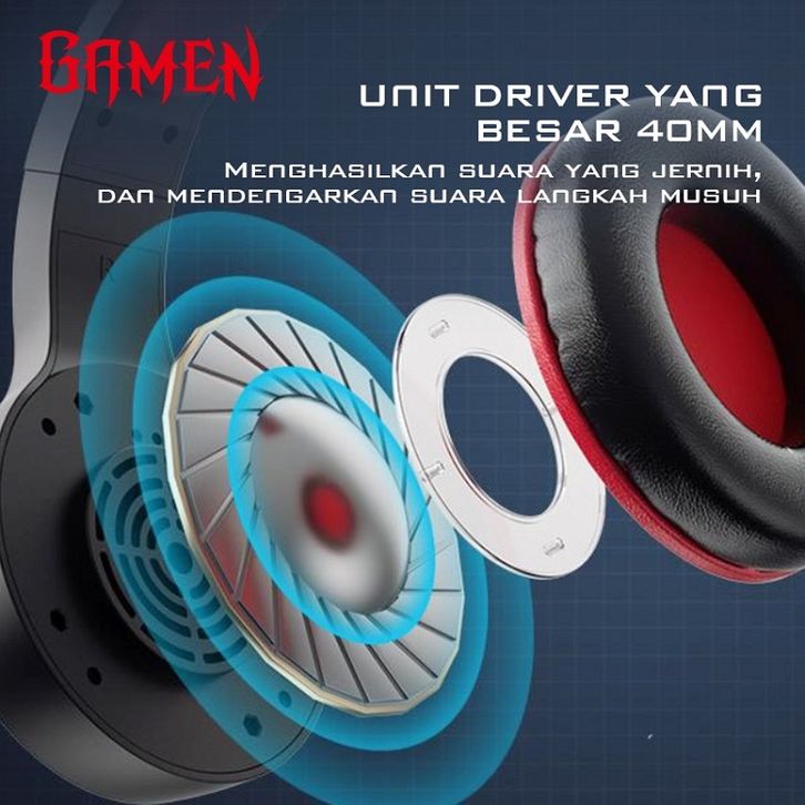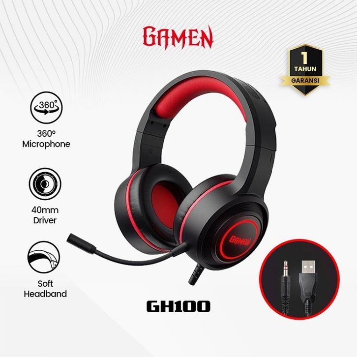 GAMEN Headset Gaming 40mm Driver 3D Surround Sound GH100 USB/AUX 3.5mm Soft Headband 360 Derajat Microphone For PC